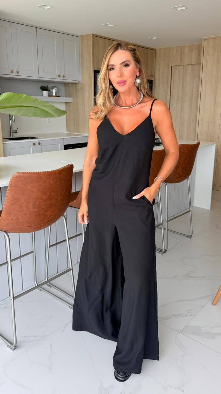 Moderno e confortável, o macacão amplo é uma peça que combina elegância e praticidade em um visual minimalista. Confeccionado em tecido leve com caimento fluido, ele proporciona movimento e um efeito sofisticado ao vestir.